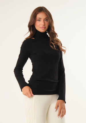 Maglia con scollo omerale a collo alto e maniche lunghe, taglio aderente