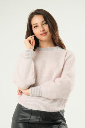 Maglia in lana profili in filo lurex, scollo rotondo, taglio dritto, maniche lunghe