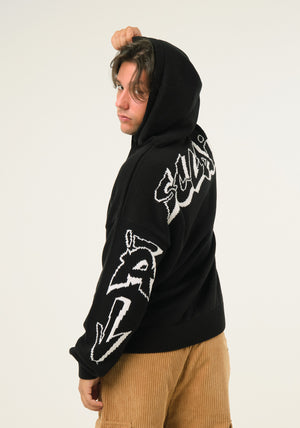 Maglia in tricot con cappuccio fisso e stampa posteriore, maniche lunghe, taglio over