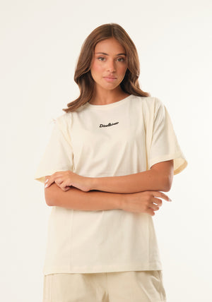 T-shirt basic in jersey a mezze maniche, scollo rotondo, taglio dritto, stampa logata frontale