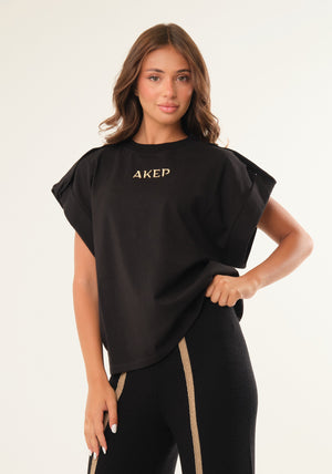 T-shirt con ampio giromanica, scollo rotondo, ricamo logato frontale a contrasto di colore, taglio dritto