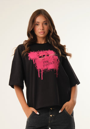 T-shirt con stampa in flock a contrasto di colore, scollo rotondo, maniche 3/4, taglio a scatoletta