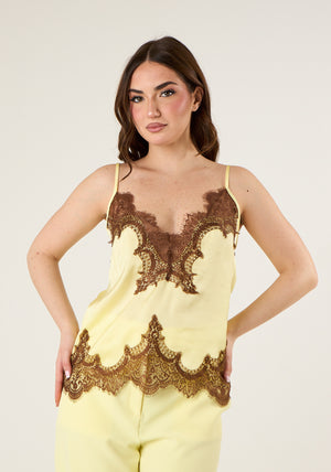 Top in raso e pizzo con scollo a V e bretelle sottili regolabili